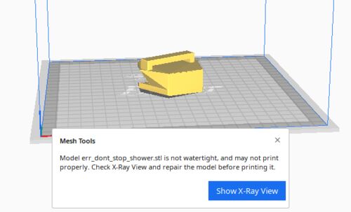 3Dプリンタでちょっと複雑なものも作れるようになったのでBlenderでこんなものを作ろうとしました。 Blender BlenderでSTLファイルをエクスポートしてCuraで開いてみるとエラーが出ます。 Mesh Tools エラー内容 Mesh Tools Model err_dont.stop_shower st i…